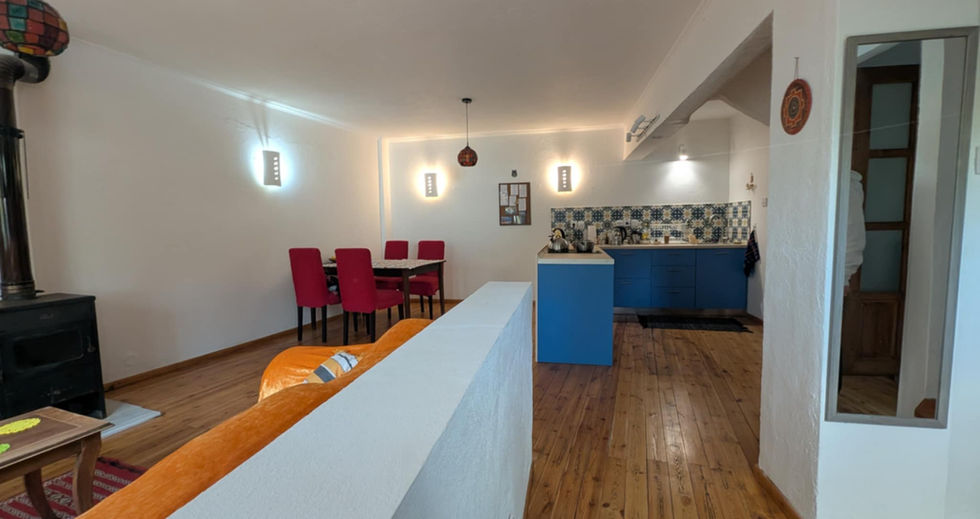 A detached house located on the outskirts of the village, featuring three bedrooms, one bathroom, one WC, and complimentary Wi-Fi access, available for holiday rental.