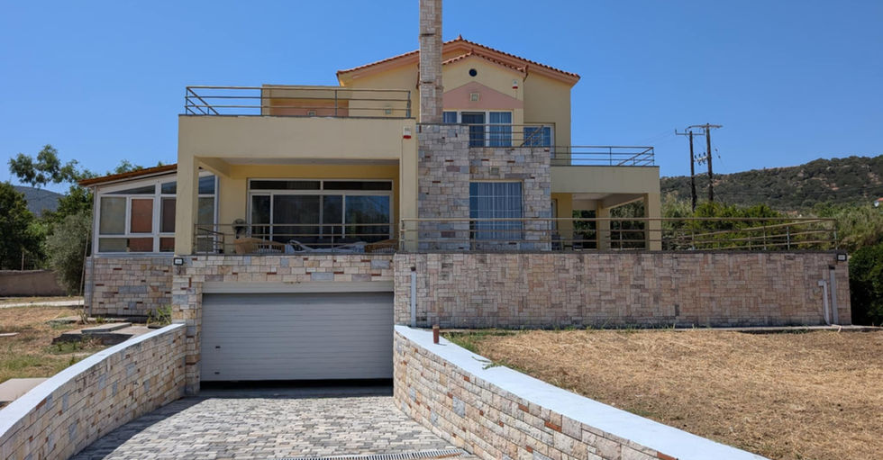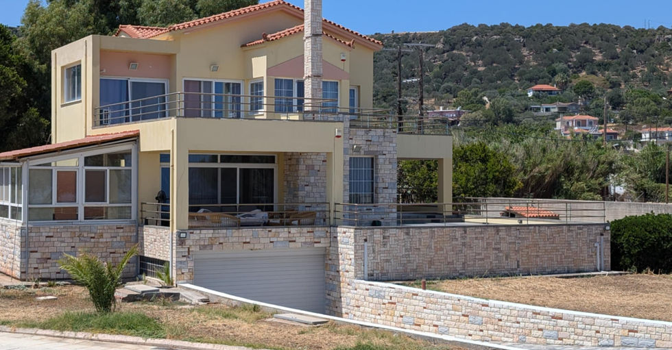 This stunning villa is located right in front of the beach and features a pool, indoor garage, guest house, and a basement with additional bedrooms for more guests. Constructed with top-quality materials, the villa is equipped with a central heating system, a fireplace, air conditioning throughout the entire house, and a backup generator for electricity. Every room offers breathtaking sea views extending all the way to the coast of Turkey.