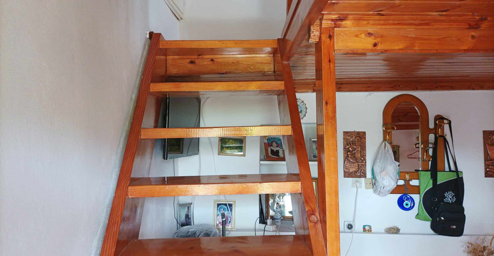 Lovely house with mezzanine sitting on a large 500 sqm plot, two kilometres from the sea on the main road to Skala. With garage and a garden of fruit trees and many flowers.