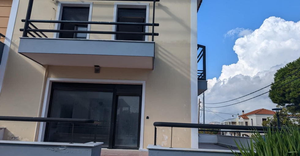 A modern-style maisonette located in a renowned neighborhood. The ground floor features a spacious living room with a fireplace, a modern kitchen, and a small WC. The first floor houses three bedrooms and two bathrooms, all offering stunning views of the sea and the city. The property also includes two parking spaces, one indoors in the basement and another in the yard.
