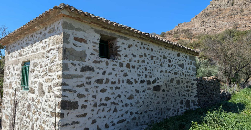 A traditional old stone house in need of renovation, situated on a property with olive, fig, and almond trees, as well as a well. It is easily accessible, located one kilometer from the village and three kilometers from the sea.
