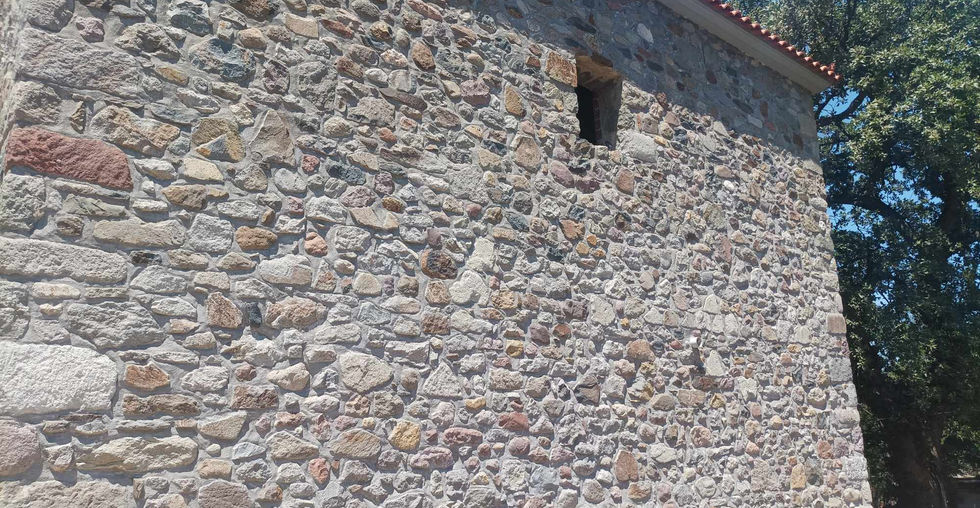 Two-storey newly built stone house with a large terras and fantastic view of a large land with fruit and olive trees.