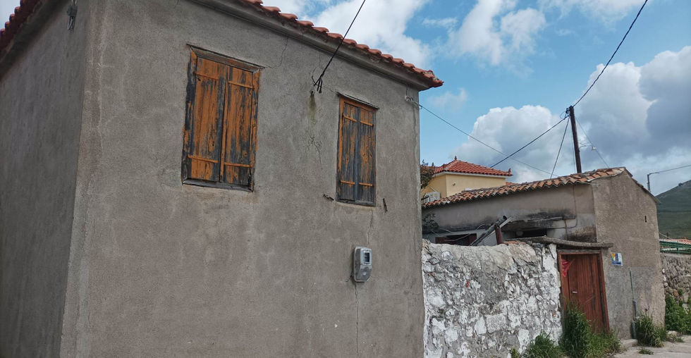 Traditional old stone house at the top of the village with big garden of fruit trees. Has easy access and nice sea views. Plot is 175 sq. m. Needs renovation.