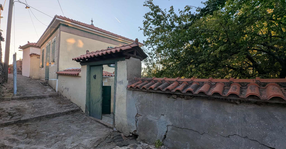 This standalone stone house is move-in ready, situated on a tree-filled plot on the eastern side of the village, offering a stunning view. The ground floor features a kitchen, living room, and bathroom, while the upper floor includes a spacious hall with two bedrooms and an additional bathroom. The garden provides ample space under the trees' shade to unwind and enjoy the authentic village ambiance.