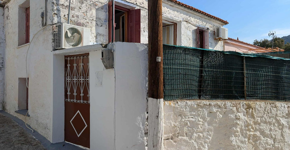 A traditional stone house with air conditioning, partially furnished, featuring a charming garden and a small storage area. Conveniently located for easy access, it's ideal as a holiday home or for year-round living.